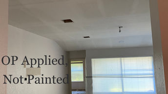 You have two options for removing textured ceilings: Scraping or Sanding. Scraping textured ceilings involves removing the textured surface using liquid to loosen the texture then scraping it off with a sharp blade, which can be labor-intensive but may result in a smoother finish. It requires two layers of 6-12mm plastic sheeting before removal. Sanding textured ceilings, on the other hand, typically involves using various sanding machines and vacuums to smooth out the texture, which can generate dust and require thorough cleanup but may be less disruptive than scraping. It requires one layer of at least 6mm plastic sheeting. Once old texture is removed you will have the option of choosing between: a smooth finish, orange peel, knockdown, slap brush and more...